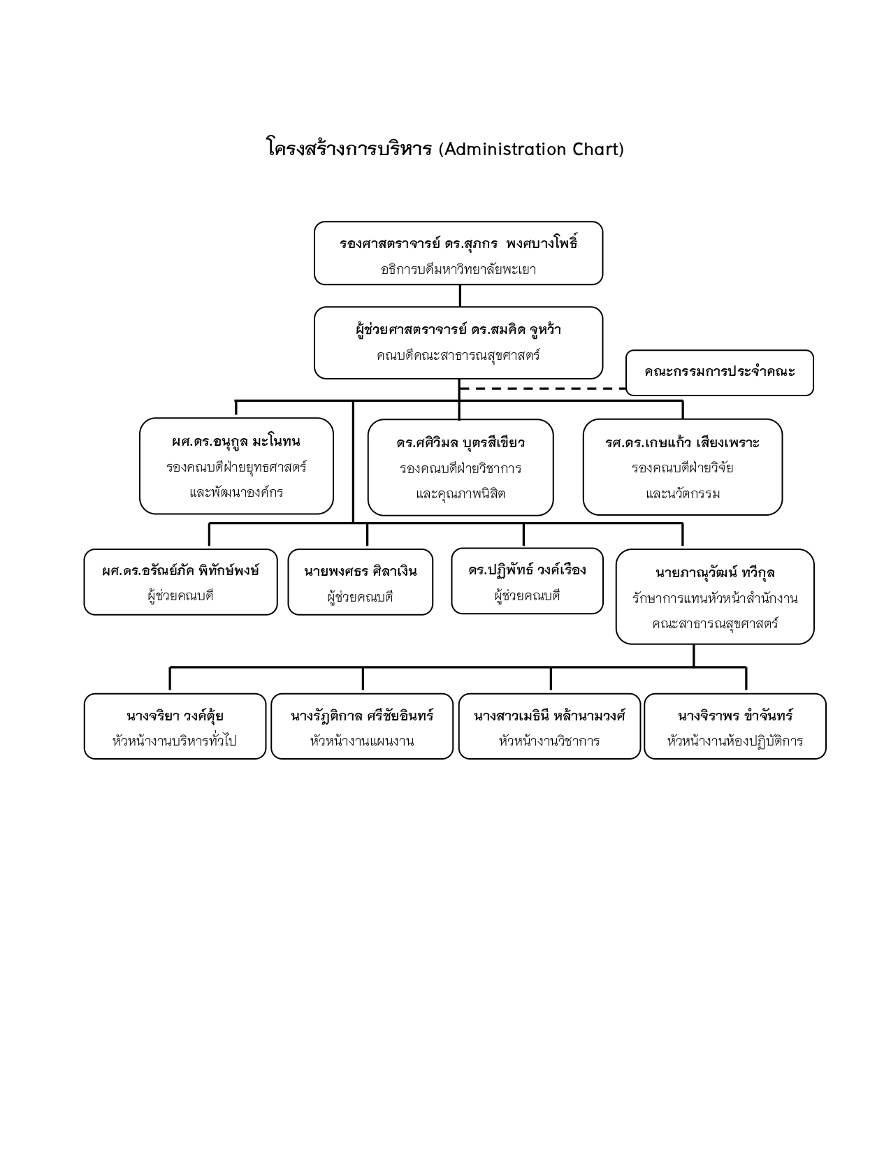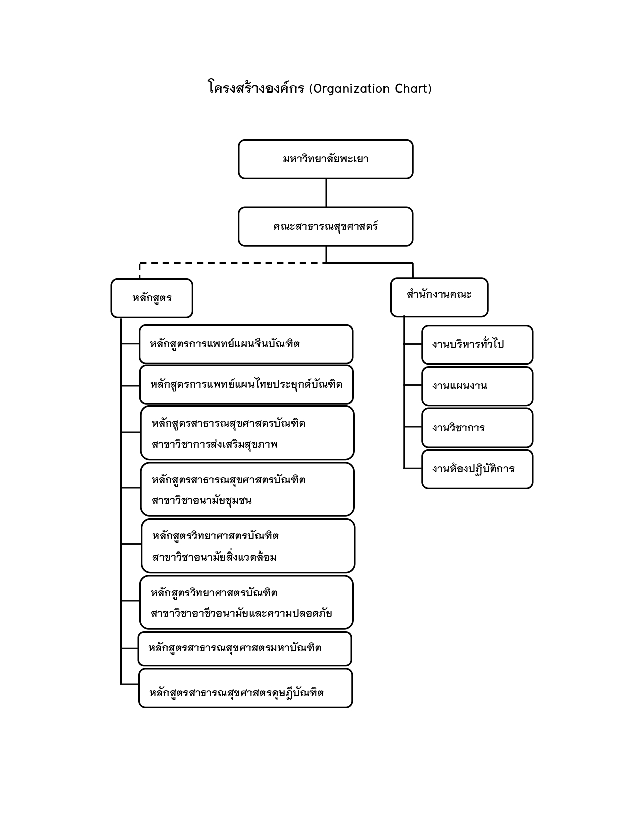 แสดงโครงสร้างการบริหารและหน่วยงานภายในคณะสาธารณสุขศาสตร์ เพื่อให้เห็นบทบาท หน้าที่ และการทำงานร่วมกันอย่างเป็นระบบ